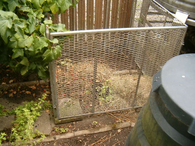 Den Komposter aus meinem alten Garten habe ich jetzt auch hier aufgebaut. Der schwarze im Vordergrund ist beschädigt, ich weiß nicht ob er noch funktioniert. |