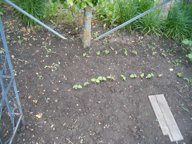 In dem kleinen Beet, links vom Gewächshaus habe ich Buschbohnen gesetzt. | |